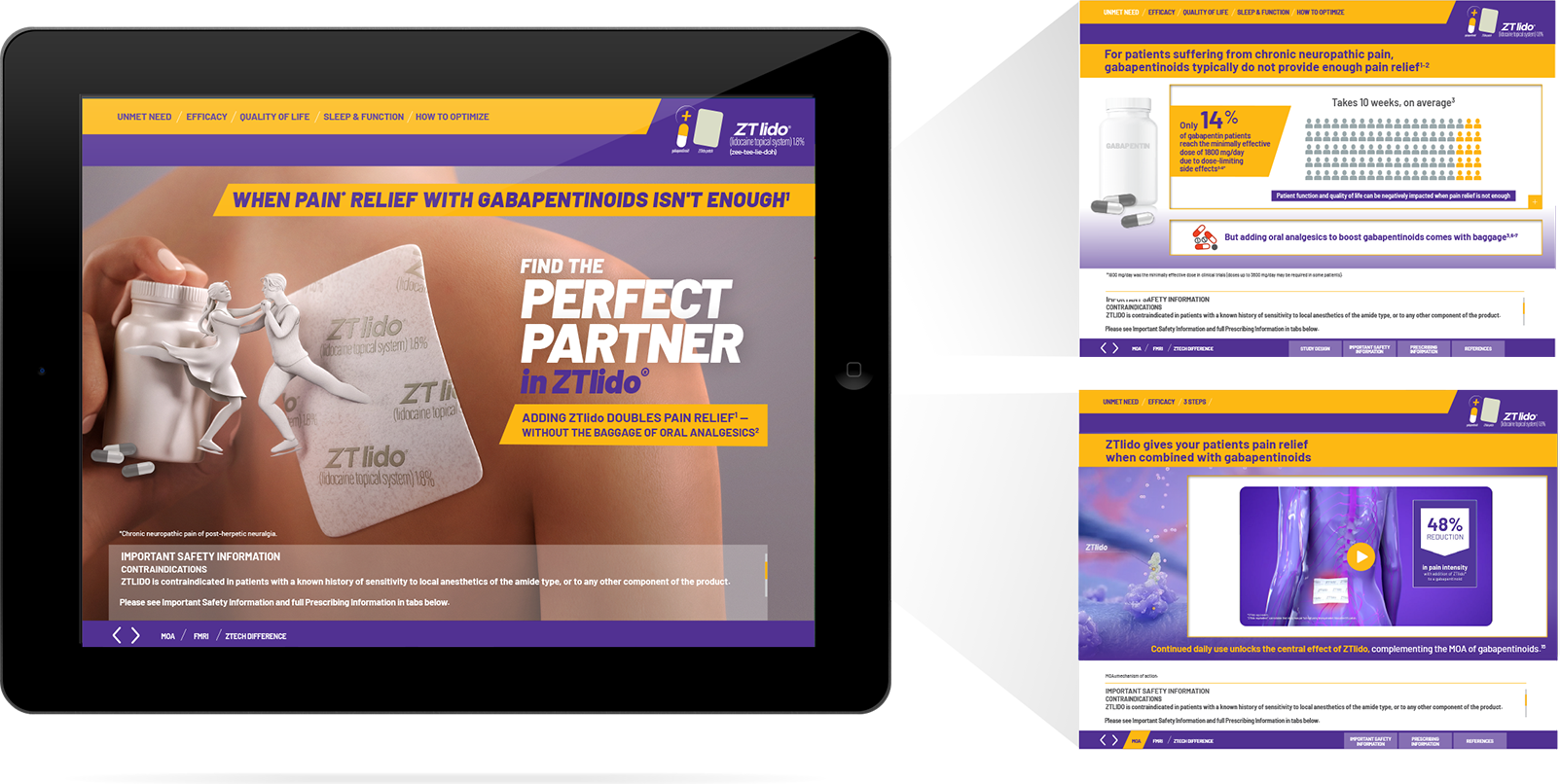 So, instead of going out first-line and going nowhere—we relaunched with this very targeted second-line strategy. We created a refresh launch campaign around this insight: ZTlido is the perfect partner when combined with gabapentinoids to double patients’ pain relief without oral analgesics.
